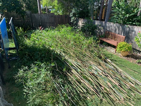 The Bamboo in the front yard was hitting the owners house and the neighbours property, a height reduction and base reduction, thinning was needed to lighten the impact.